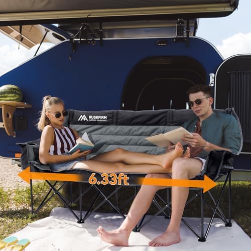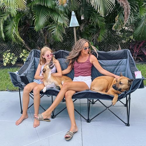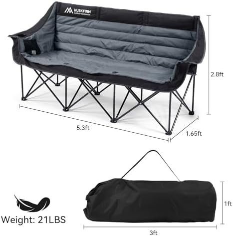 **Product Title: 3-Person Camping Chair – Folding Double Camping Chair – Portable Oversized Loveseat Padded Camp Chair for Adults – Heavy Duty Camping Couch with Cup Holders & Carry Bag**